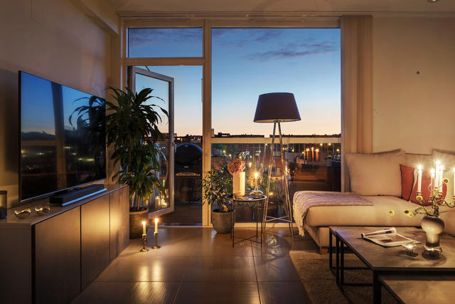 Imponerande våning med hiss rakt in i lägenheten och underbar balkong i västläge!