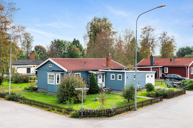 Enplansvilla med sjöutsikt och granne med lekplats.