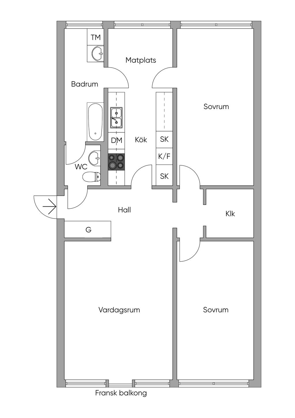 • Rum: 3, varav 2 sovrum