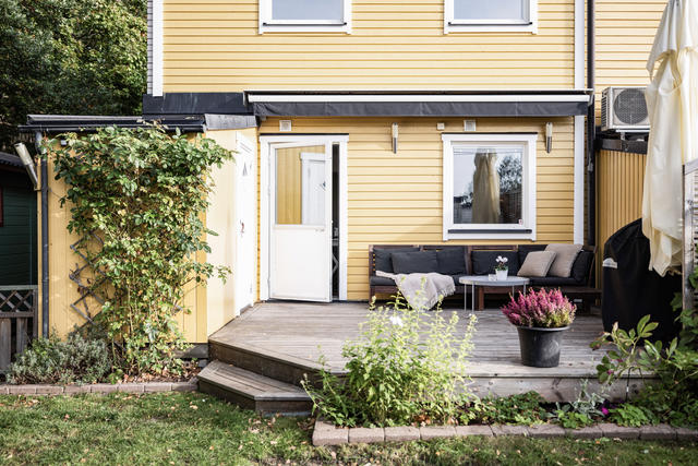 Välplanerat och renoverat radhus med gavelläge och extra förrådsbyggnad!