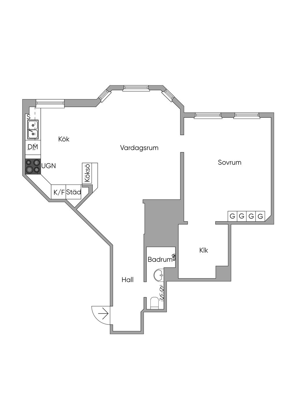 Fin sekelskiftestvåa om 57 kvm mot gård!