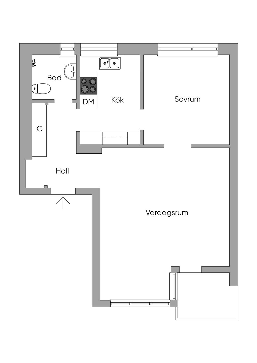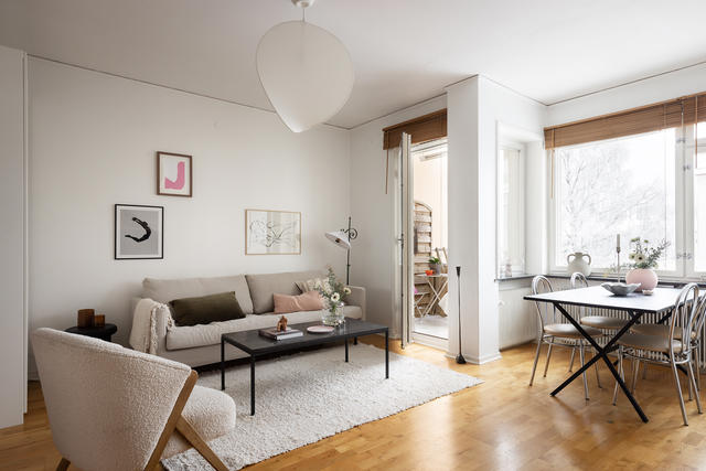 Utmärkt planerad och ljus 40-tals 2:a med balkong högst upp i huset i lågt belånad BRF!
