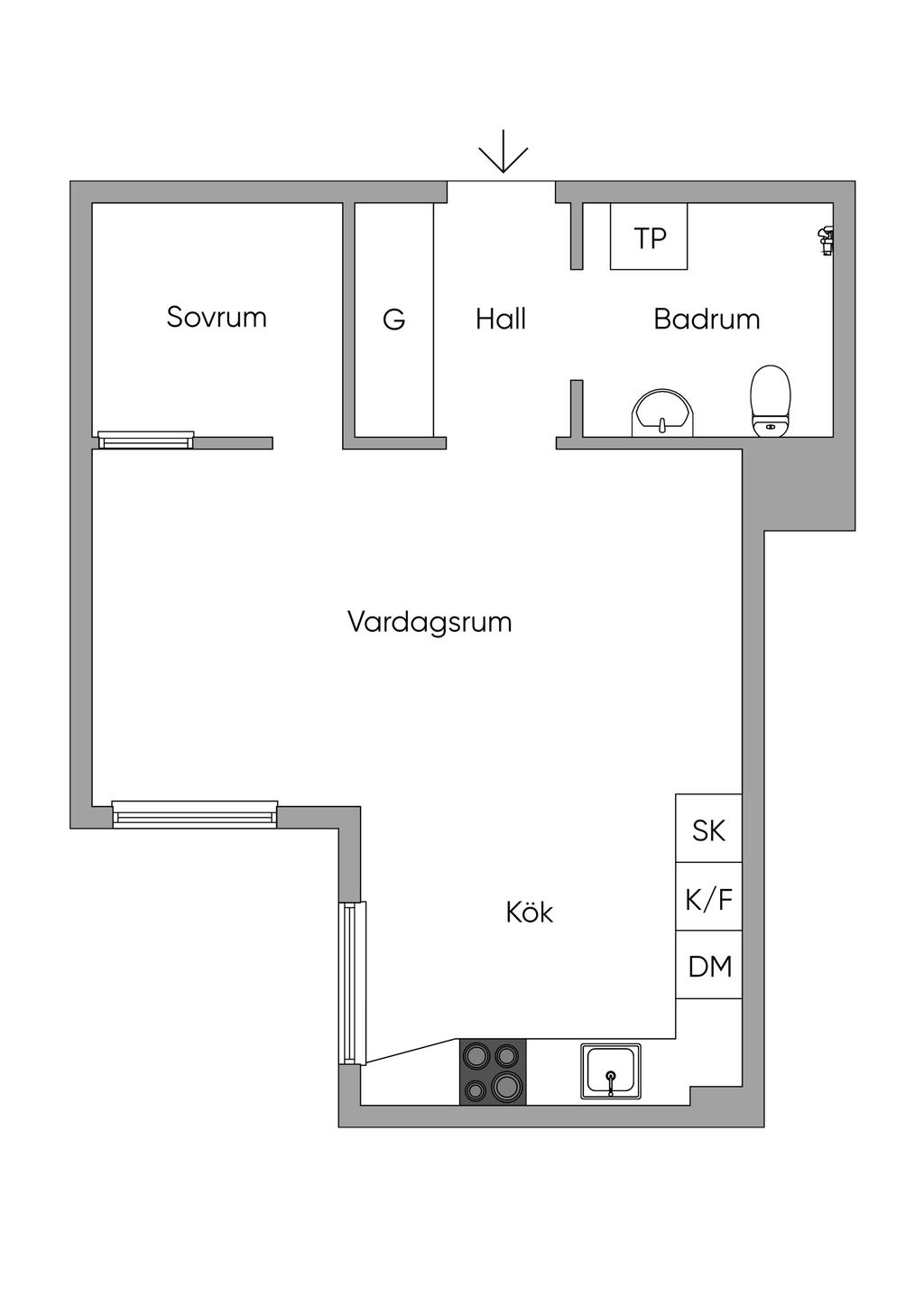 Mycket attraktiv 2:a med fantastiska fönster och gedigen takhöjd