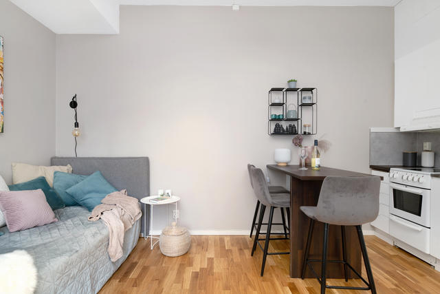 Perfekt planerad 1:a med stor uteplats och generös takhöjd!
