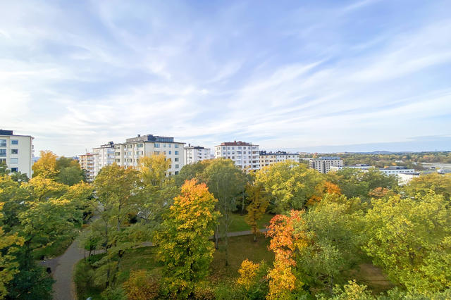 Välplanerad funkislägenhet med unik balkong med en otrolig utsikt. Välskött förening, friköpt mark.