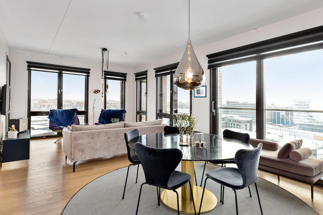 Exklusiv 4:a med lyxiga materialval & stora panoramafönster högt upp i huset. Vån 9/12!
