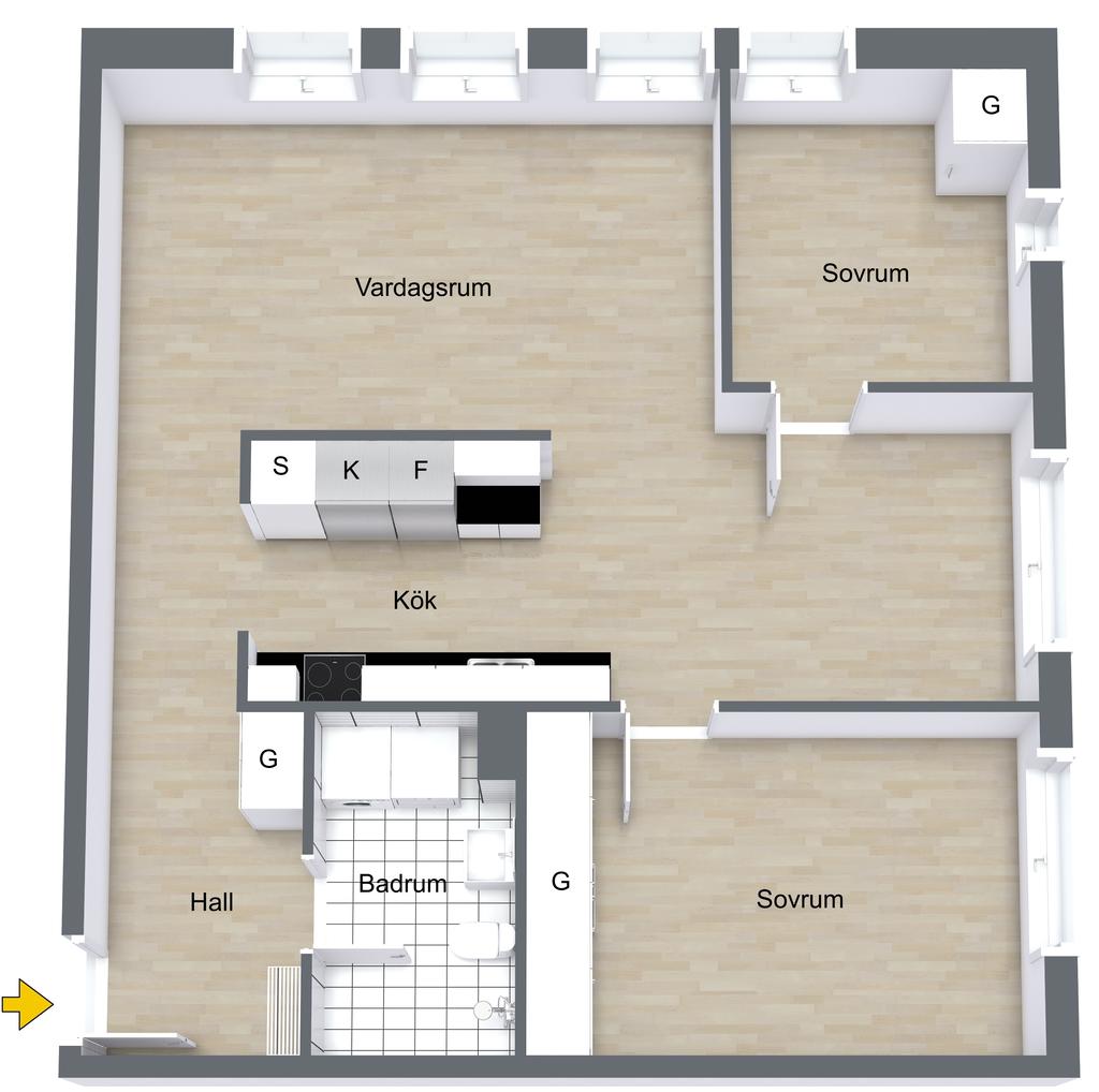 Trevlig gavellägenhet om 3rok med fint ljusinsläpp!