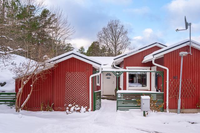 Enplans-radhus i lugna kvarter med garage, uteplats och trädgård
