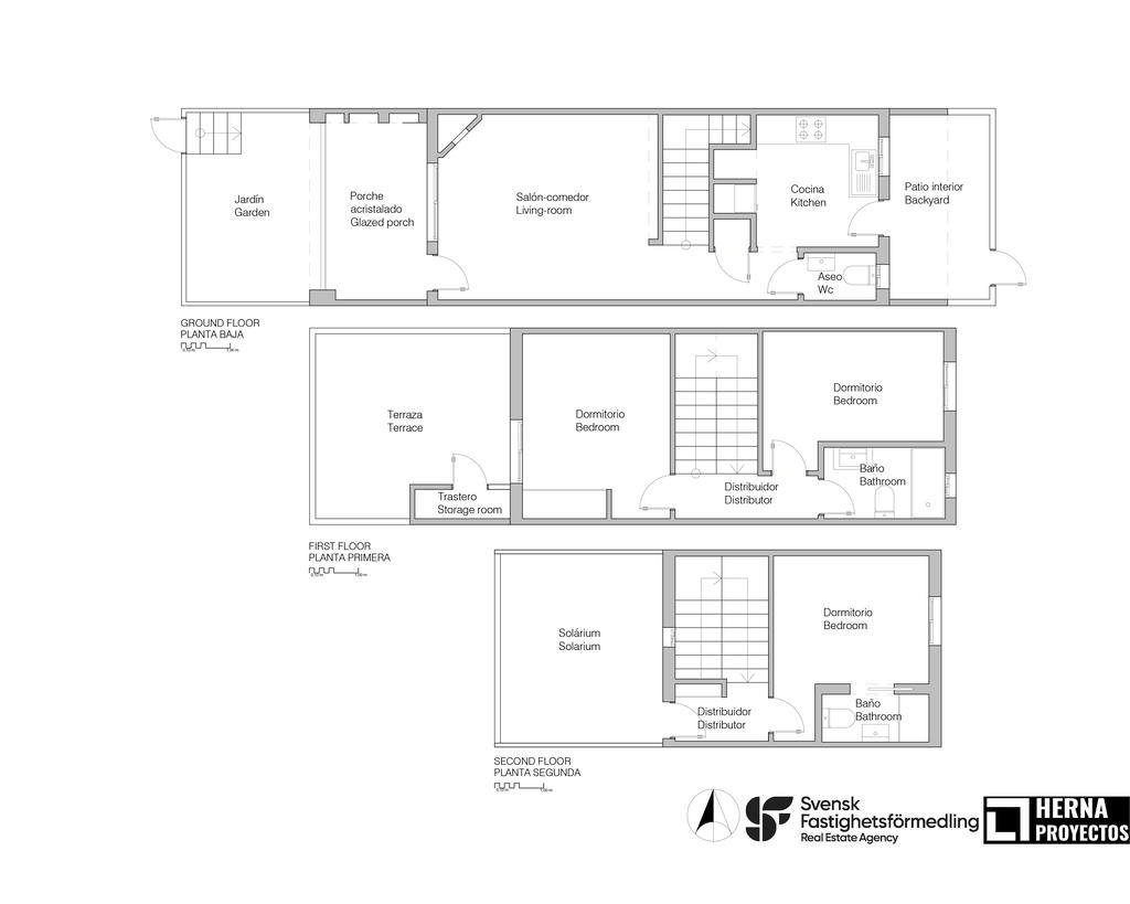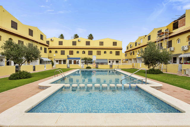 Radhus nära havet i Rosaleda med solig terrass och gemensam pool.