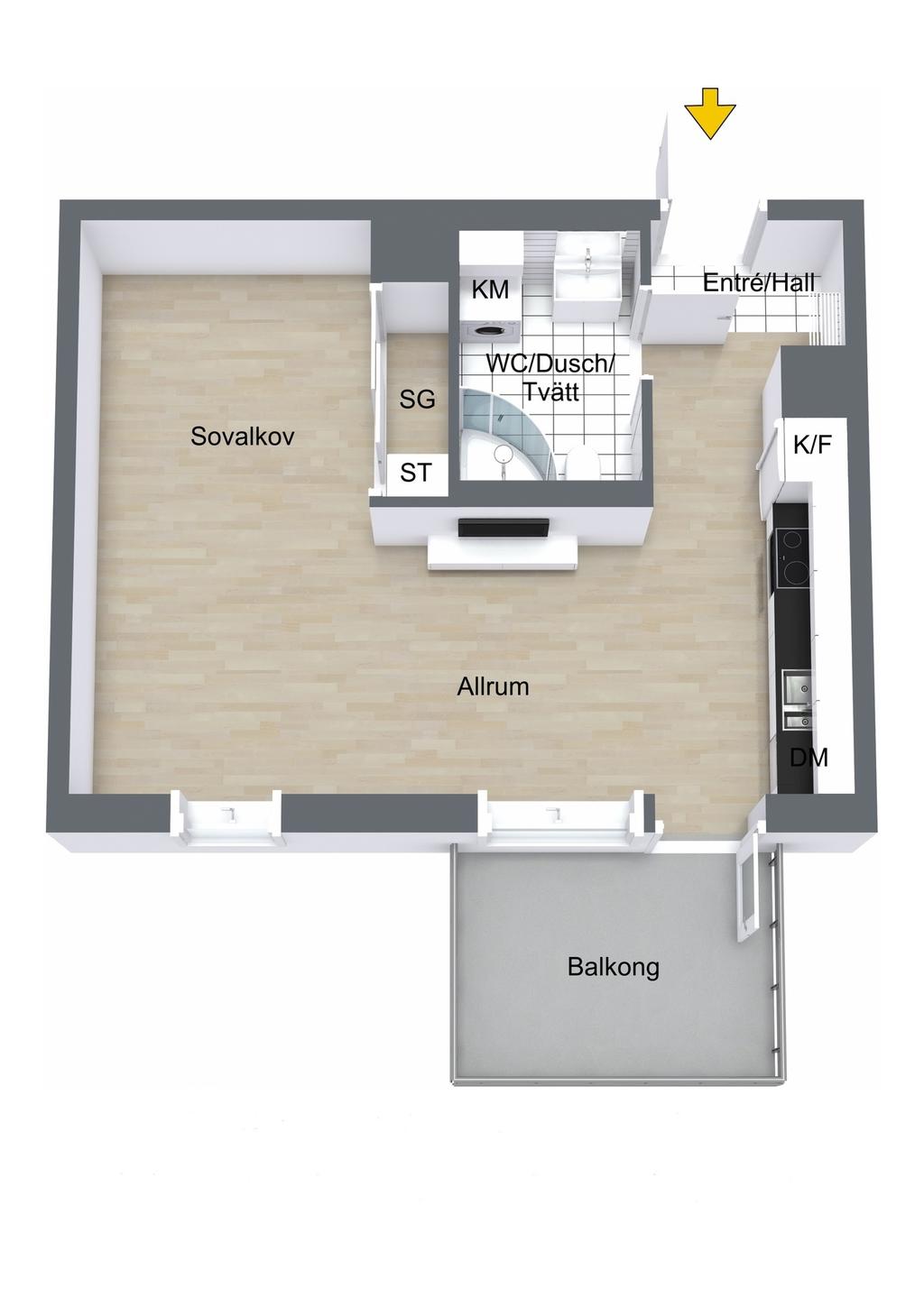 Välplanerad etta med sovalkov högst upp i huset nära centrum!