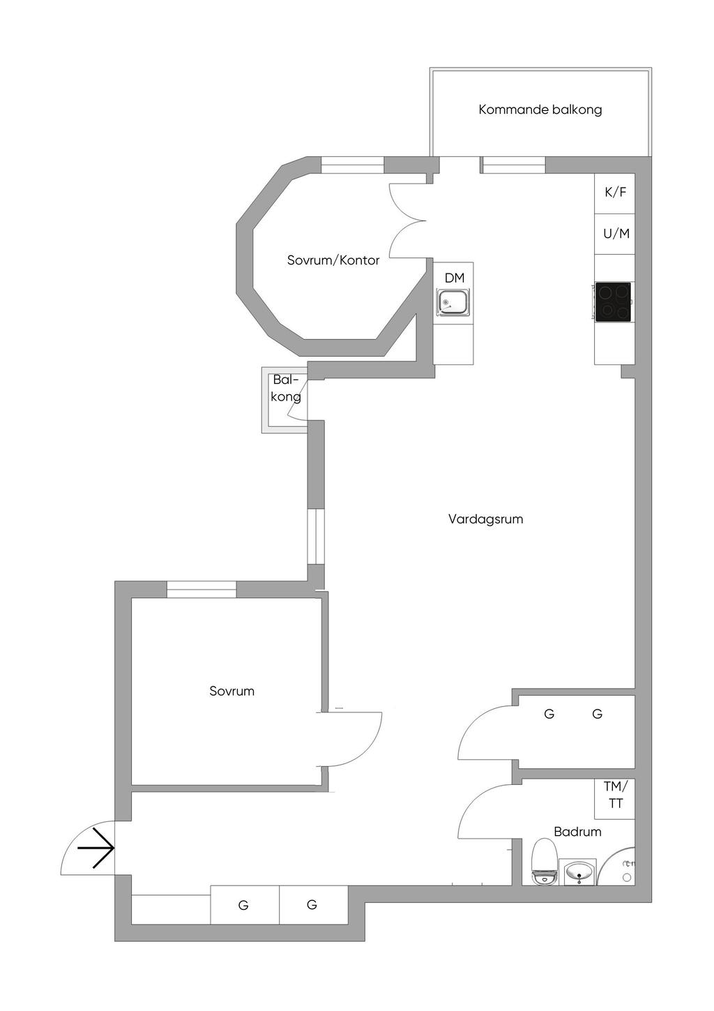 Lägenhet i absoluta toppskick, öppen planlösning, högt i tak samt balkong!