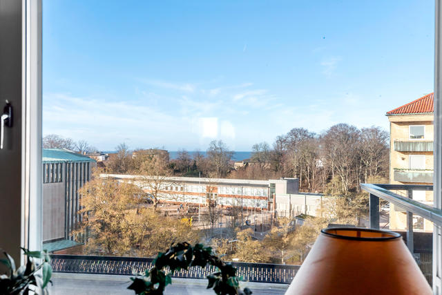 Unik takvåning med två terrasser, eldstad och utsikt över havet hela vägen till Köpenhamn!