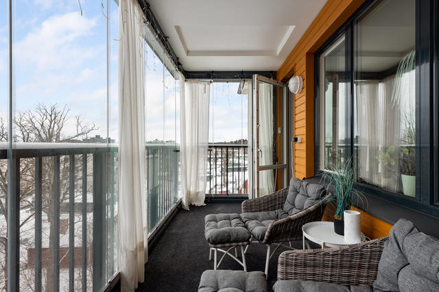 Bra planerad trea med härlig inglasad balkong och havsutsikt högst upp i huset
