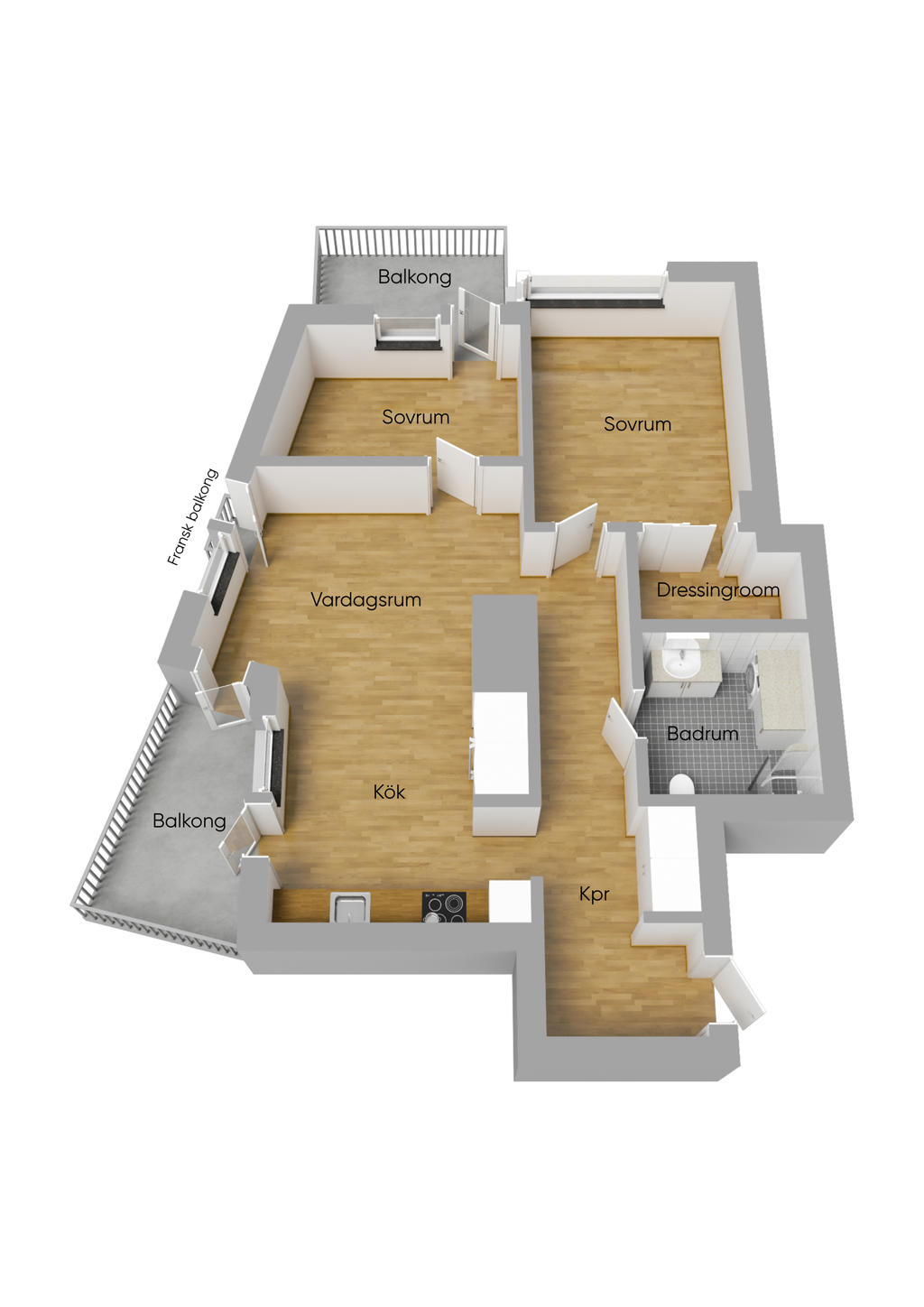 • Rum: 3, varav 2 sovrum
