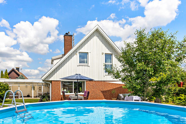 Välskött 1½-plansvilla med lummig trädgård i centrala Kvidinge!