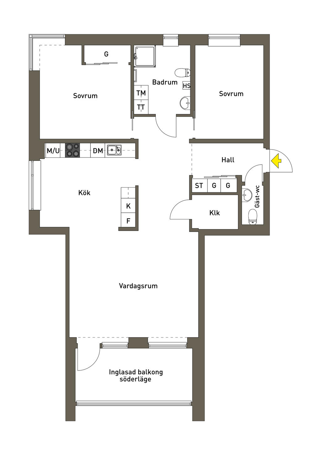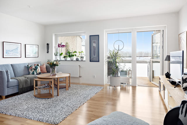 Högst upp i huset med ett gavelläge och en inglasad balkong i söder!