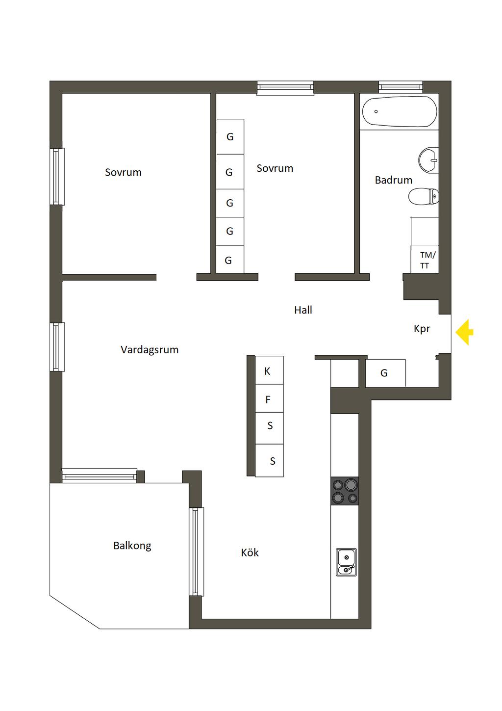 Välkommen till en välplanerad 3:a med stor balkong i trevligt solläge!