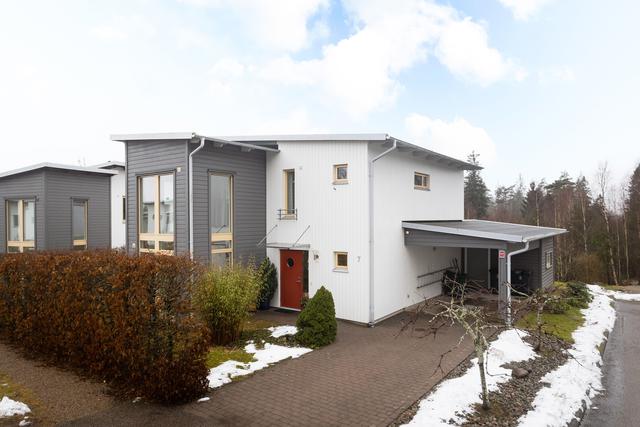 Villa i två plan med modern arkitektur på hörntomt på familjevänliga Hestra!