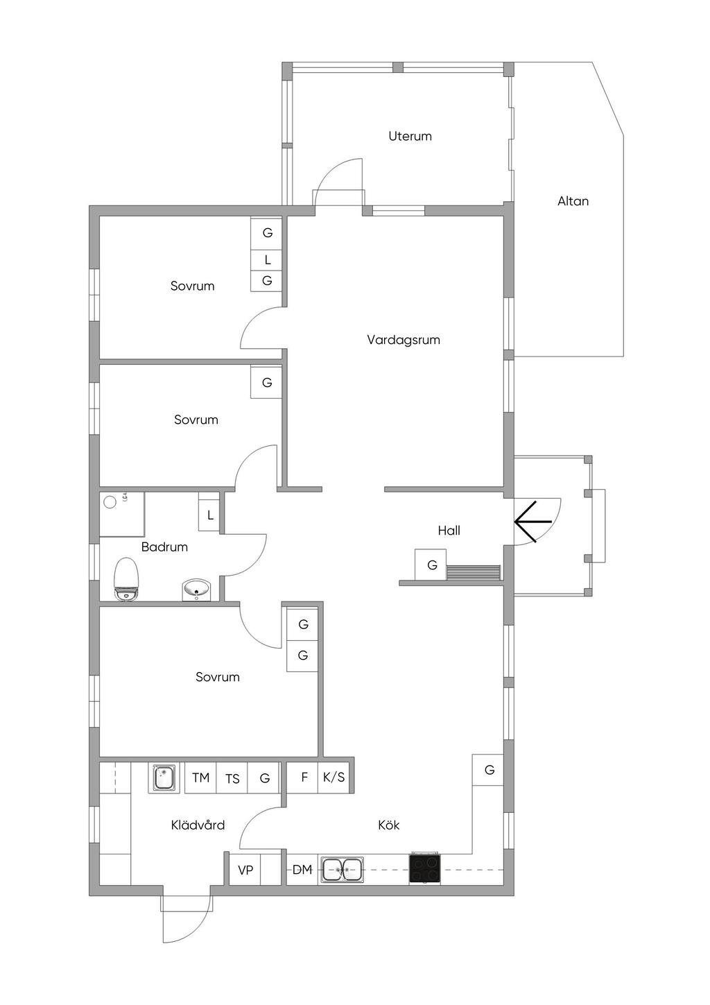 Ljust och luftigt 1-planshus med solig uteplats och uterum i barnvänligt område