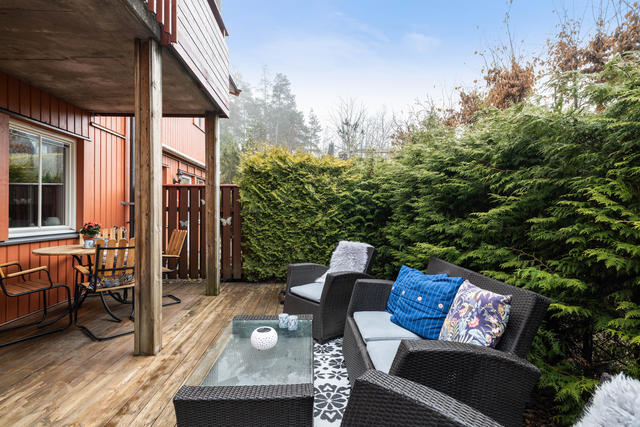 Radhuskänsla i lugnt område med stor och insynsskyddad uteplats