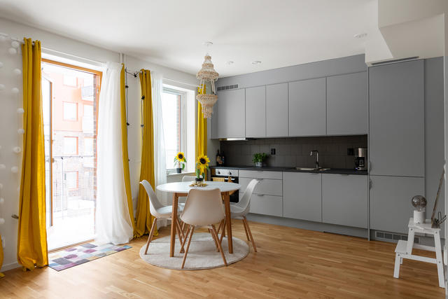 Inne i bostaden slås man direkt av det underbara ljusflödet och de fina materialvalen!