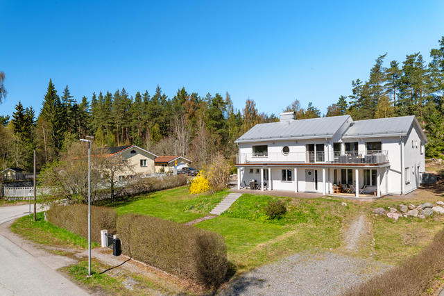 Stort och ljust hus på hörntomt med sol hela dagen och kvällssol i naturnära och barnvänligt läge