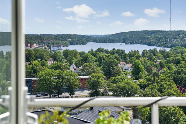 Bo högst upp i huset med milsvid utsikt, hiss, sjöutsikt samt inglasad balkong - Tvåa/möjlig trea!