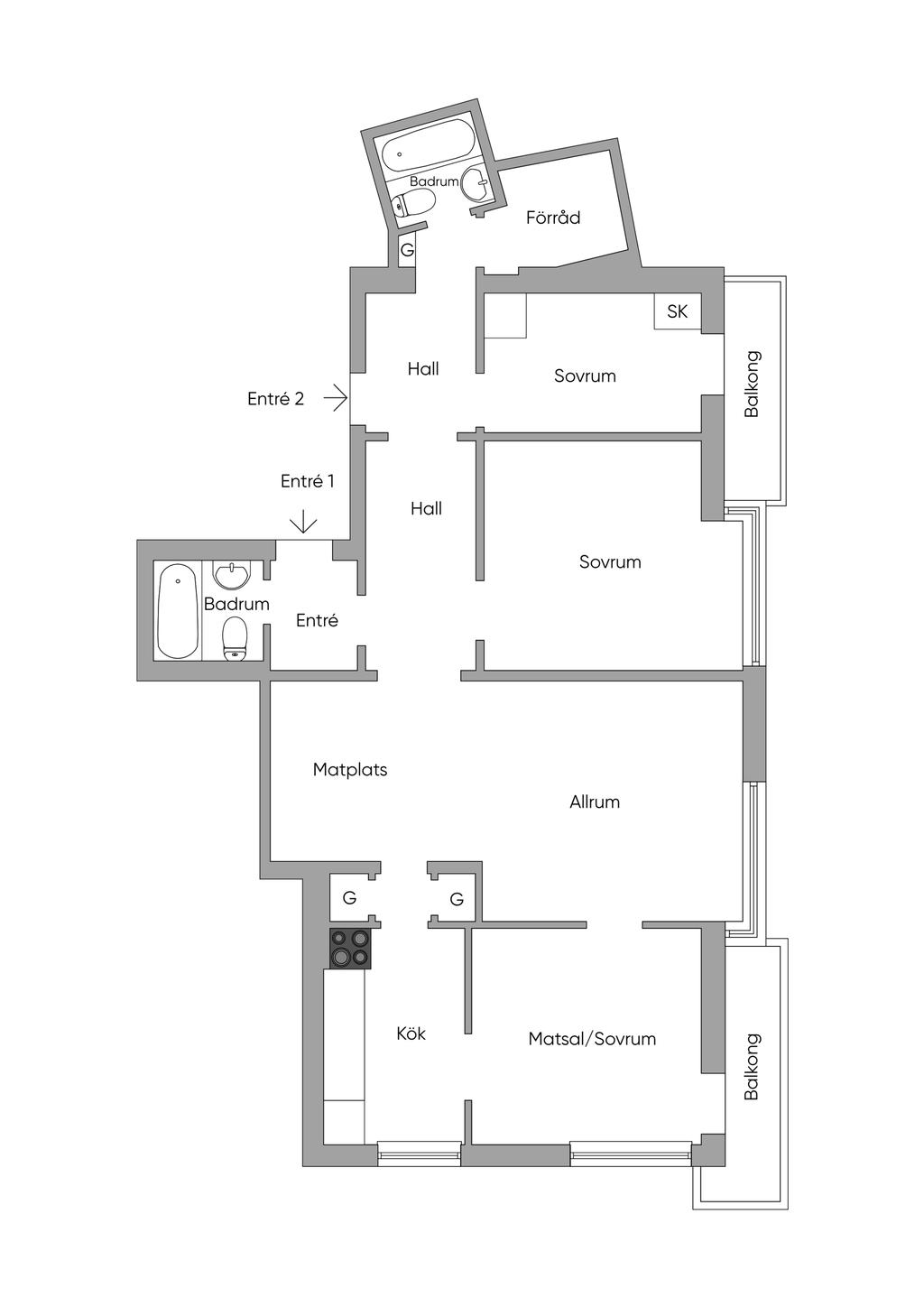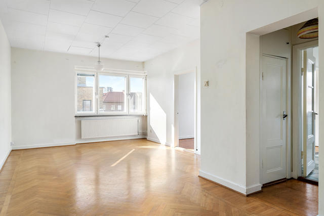 Fyra högst upp i huset med dubbla balkonger i söderläge!