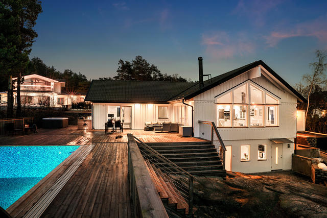 1-Planshus med havsutsikt, dubbelgarage, separat lägenhet samt pool och spabad!