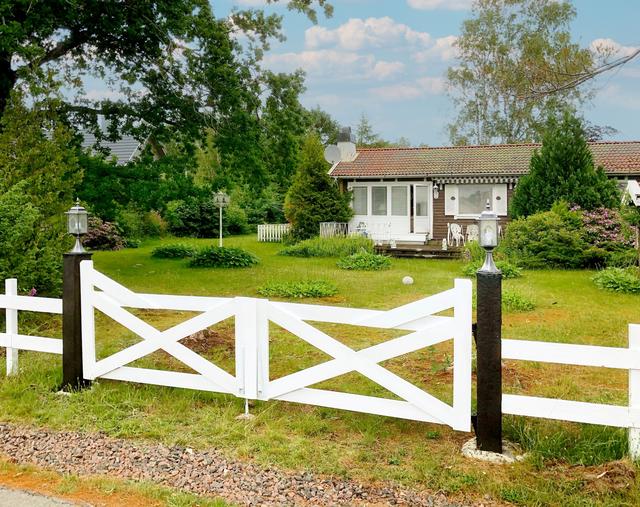 Enplanshus med garage på stor hörntomt med gångavstånd till Bråtaviken i Åsa!