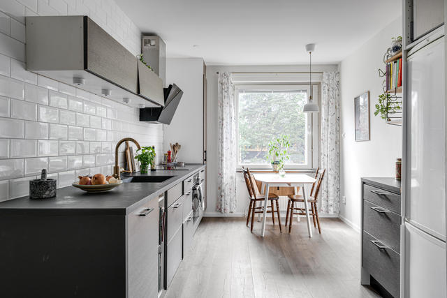 Välkomna till en fint renoverade tvåa med inglasad balkong högst upp i huset!
