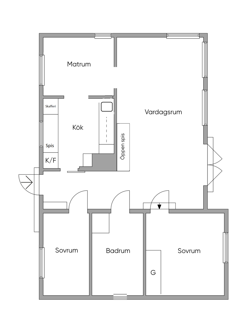 • Rum: 3, varav 2 sovrum