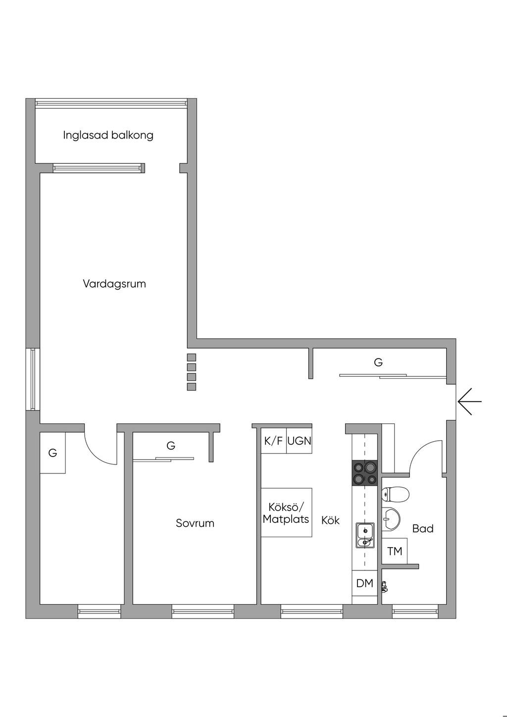 Välplanerad och fräsch gavel 3:a med inglasad balkong i västläge