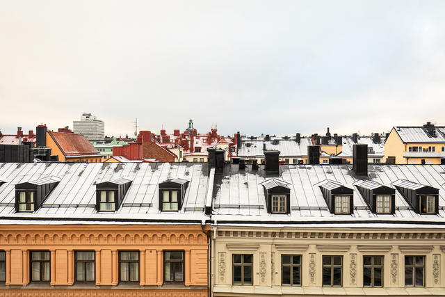 Rymlig 4:a näst högst upp i huset med balkong mot gård.