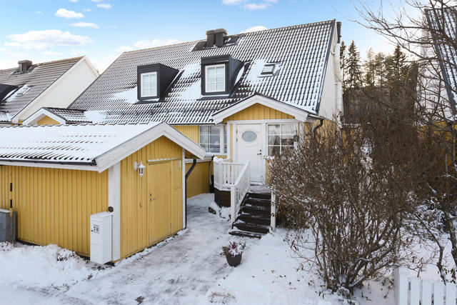 Skyddat läge, baksidan i väster mot skog. Trivsam planlösning