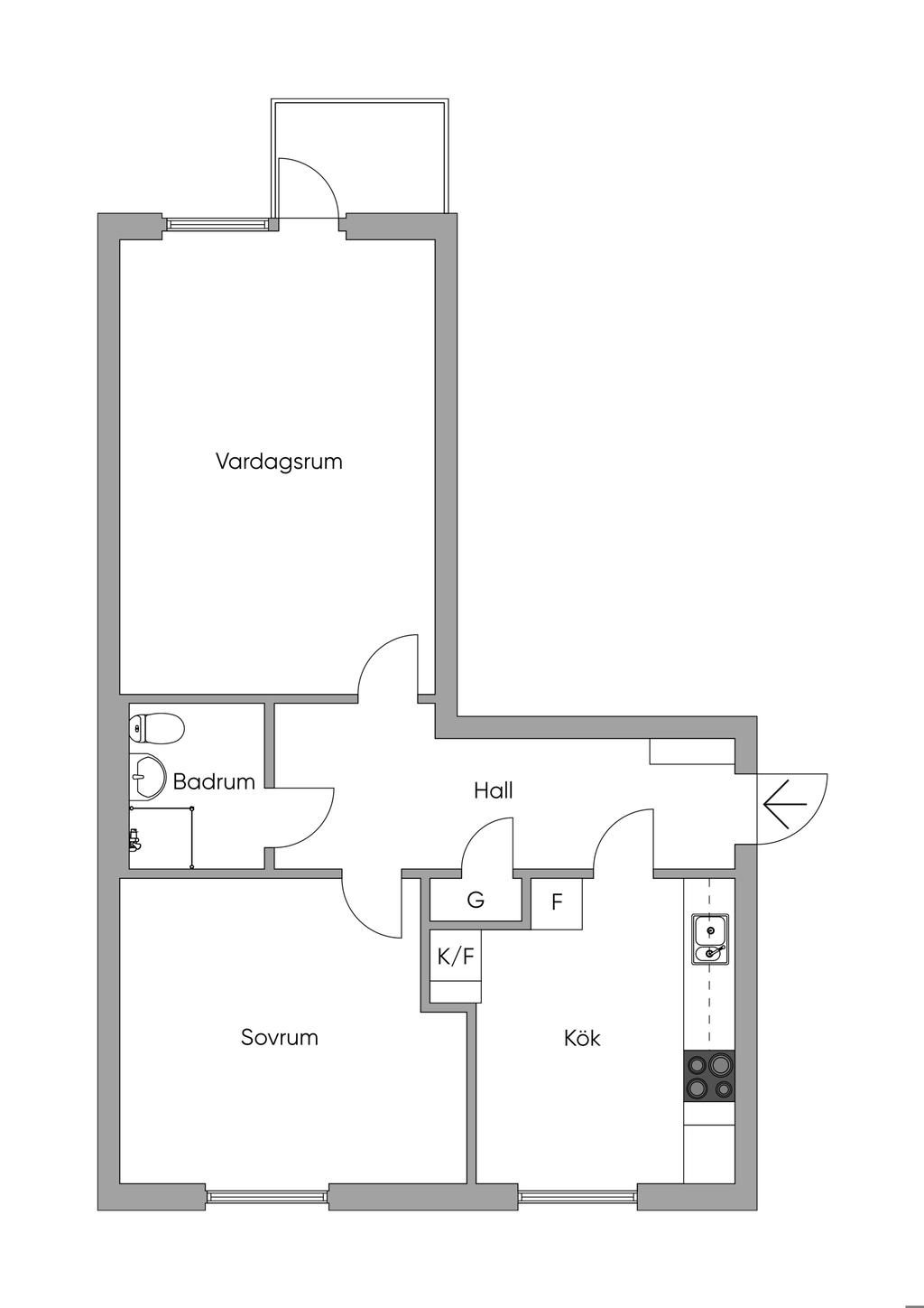En ljus och rymlig 2:a på 58 m² endast en halvtrappa upp på Silfwerbrandshöjden!