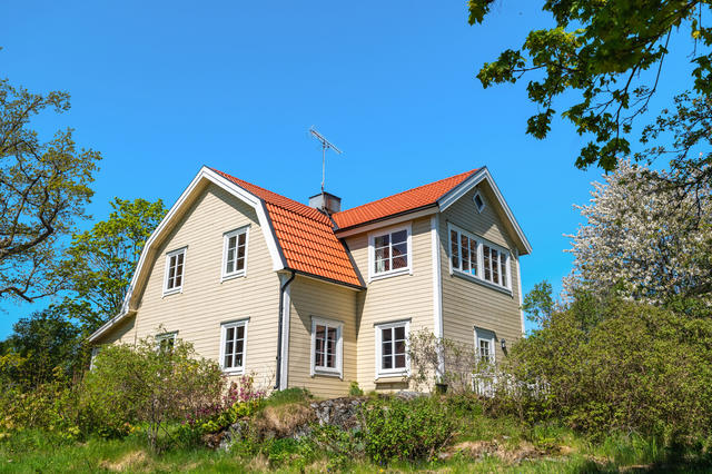 Sekelskifteshus med havsutsikt och gästhus i Räfsnäs, Rådmansö