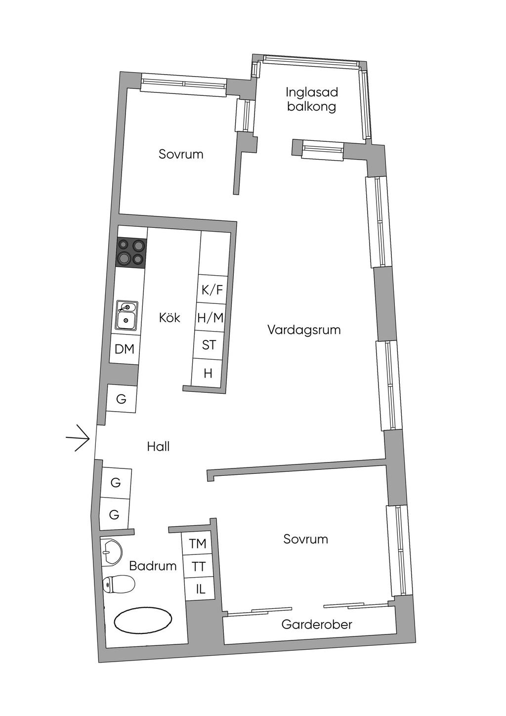 Yteffektiv 3a med gavelläge och inglasad balkong