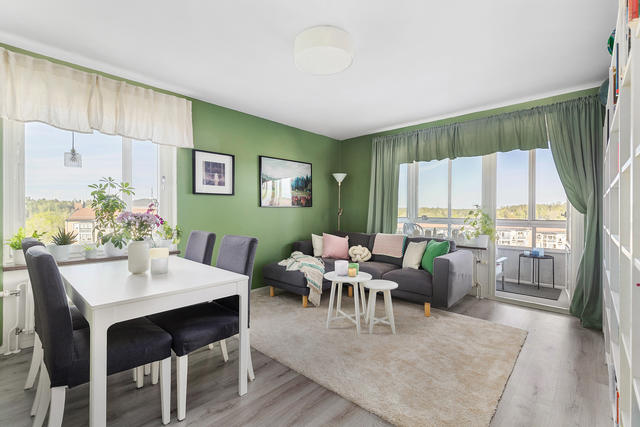 Generös tvåa högst upp i fastighet med hiss. Inglasad balkong och riktigt fin vy!