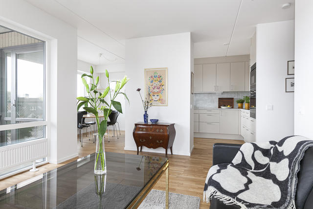 Attraktiv hörnlägenhet högst upp i huset med trivsam balkong!