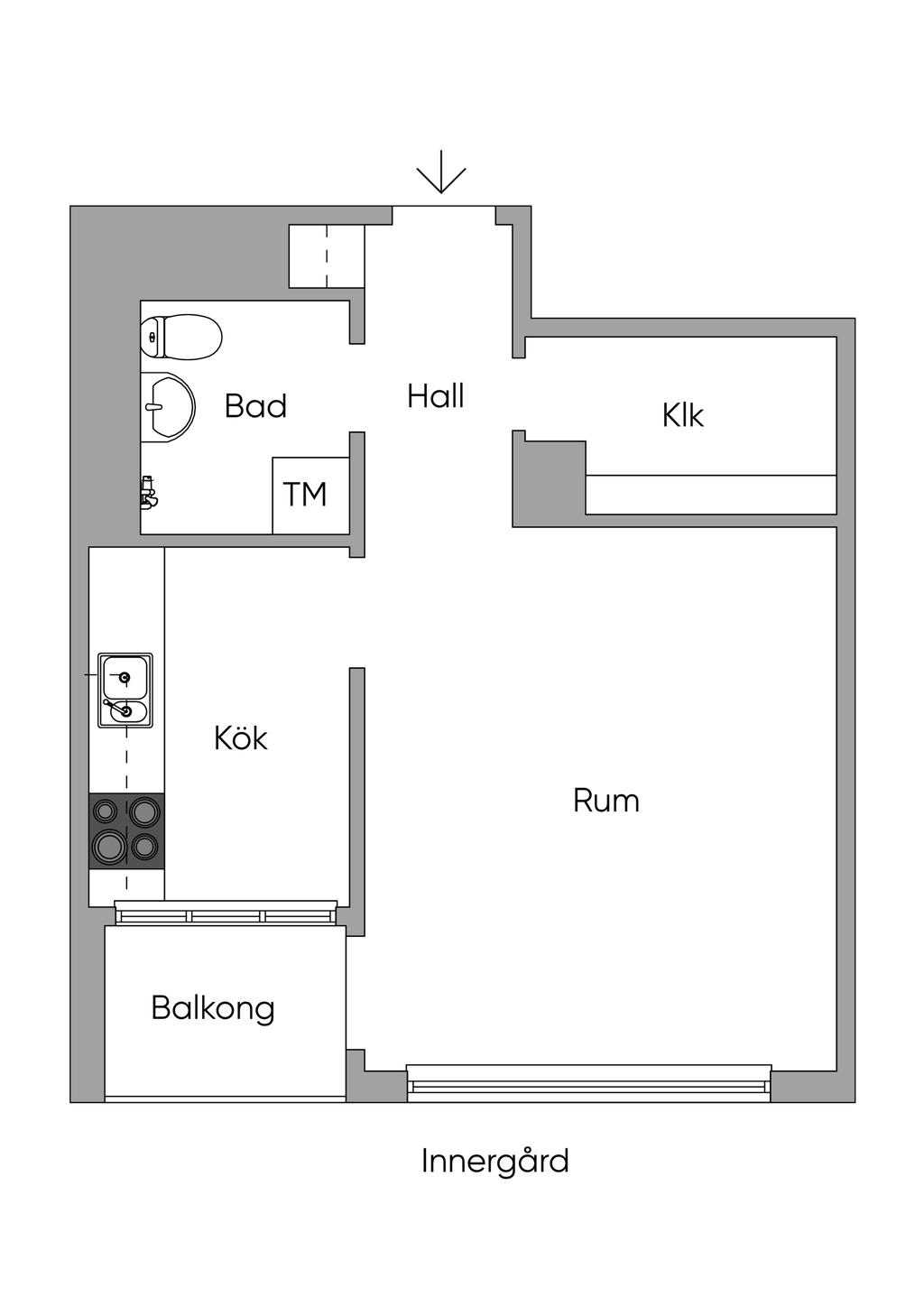 Ljus 60-tals 1:a med balkong i soligt och tyst gårdsläge!