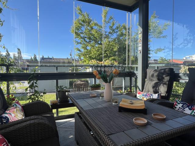 Trevlig trea med inglasad balkong med eftermiddags- och kvällssol!