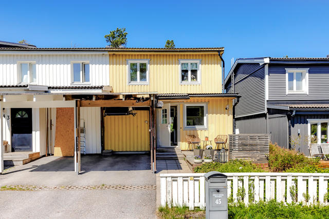 Eftertraktat radhus i Norra Lännersta - uteplats mot natur och skog.
