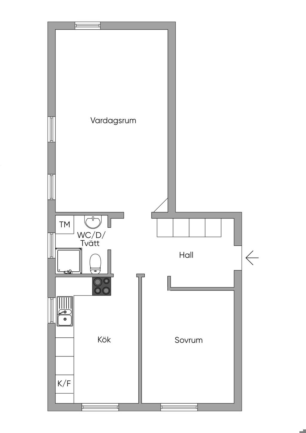 Välplanerad tvåa endast en halv trappa upp med balkong i söder