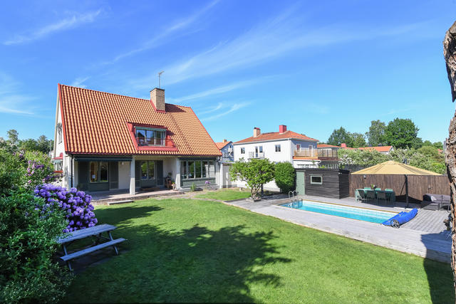 Klassiskt centralt beläget 50-talshus med stor uppvuxen trädgård och pool i populära Vallbacken!