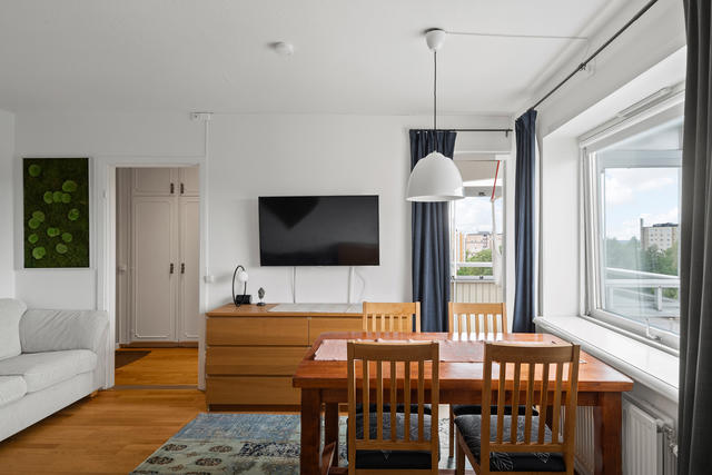 Fin 1:a med stor inglasad balkong - högst upp i huset!
