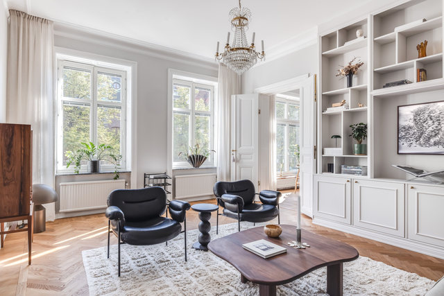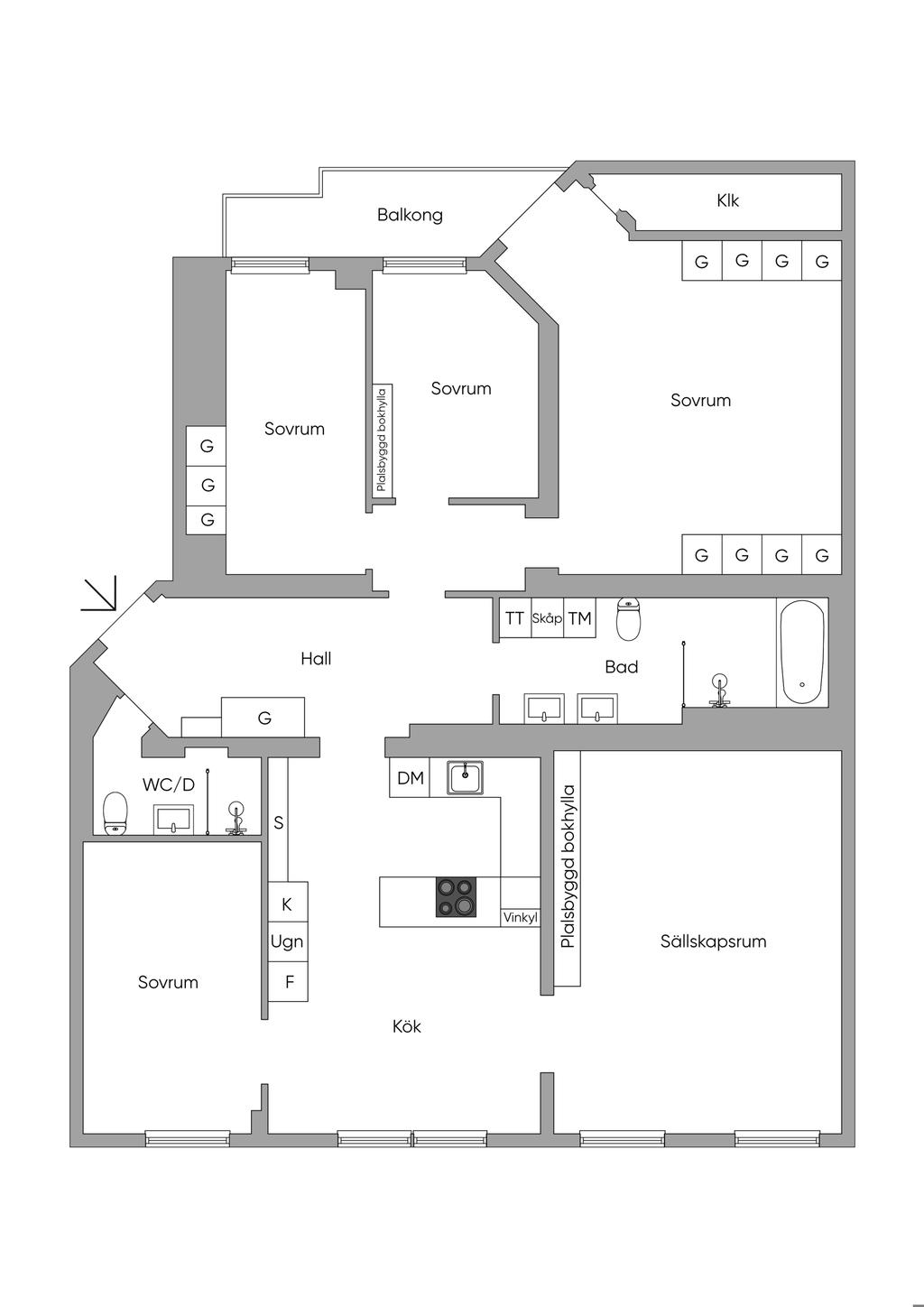 Välplanerad femrummare med dubbla badrum och balkong. Skuldfri förening med garageplats.