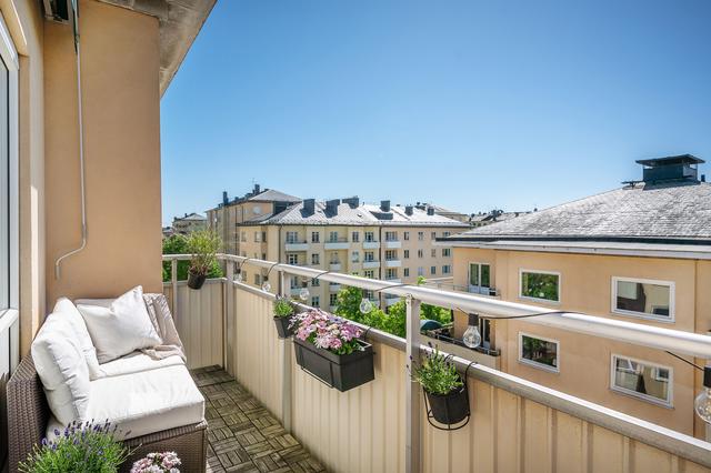 Högst upp i huset, balkong i sydväst och i mycket gott skick!