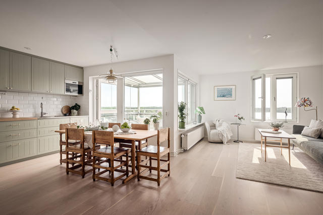 Nyrenoverad gavel-trea , högst upp i huset med stor inglasad balkong i sydvästläge!