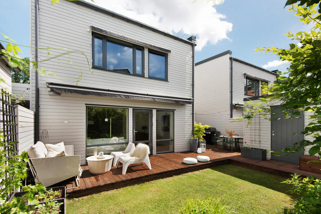 Modernt & lättskött kedjehus i 2-plan med inhägnad tomt i soligt söderläge